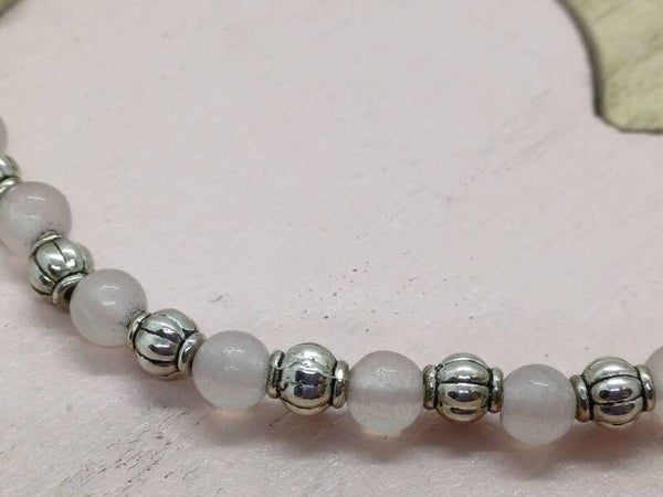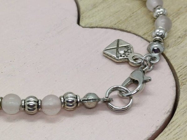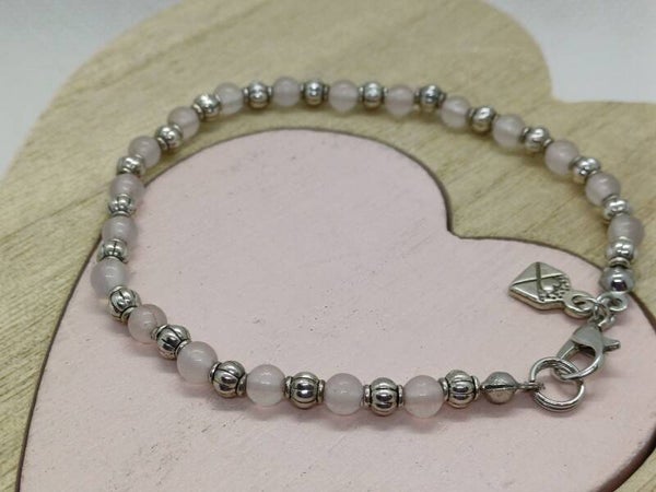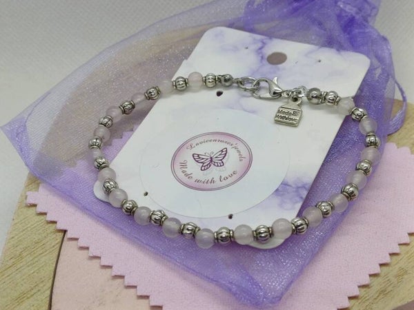 Moderne fijne armband met mini Rozenkwarts parels -4mm - en 925 zilver parels-5mm en afgewerkt met nikkelvrij materiaal .