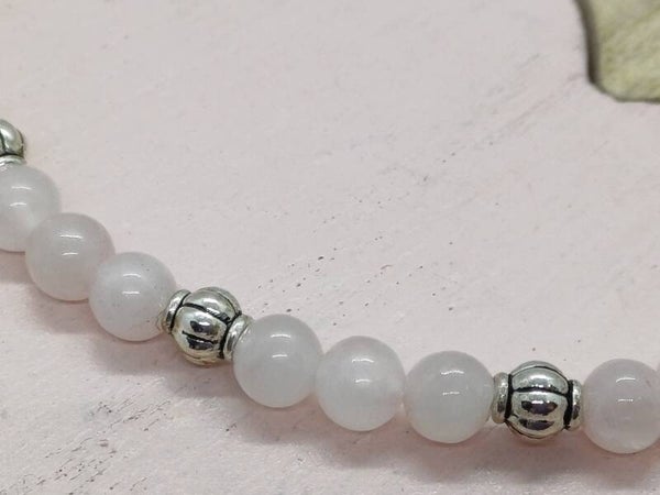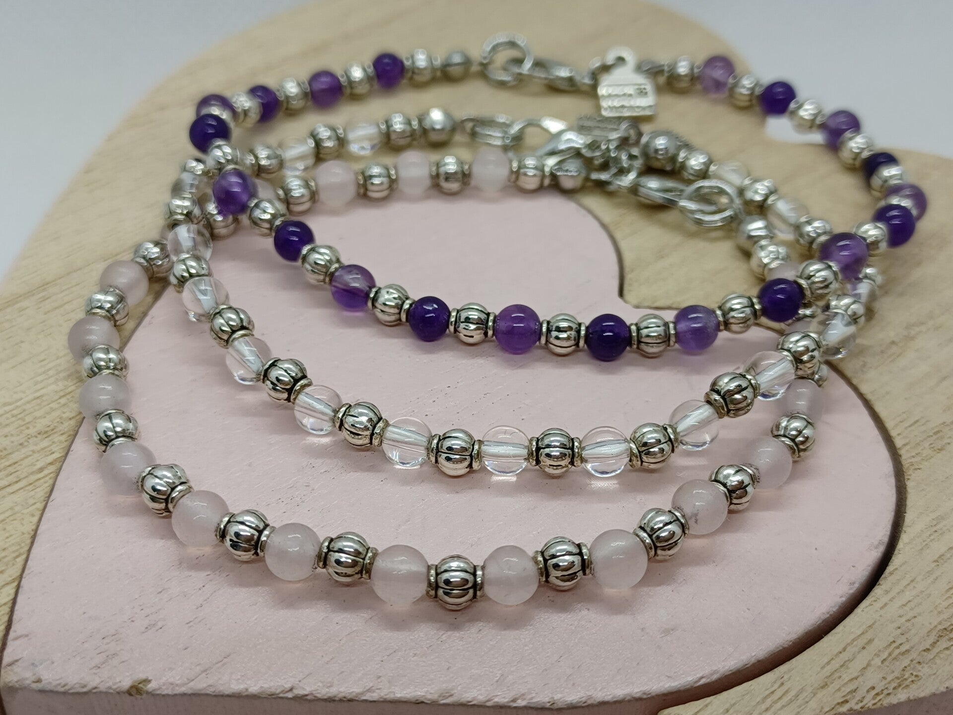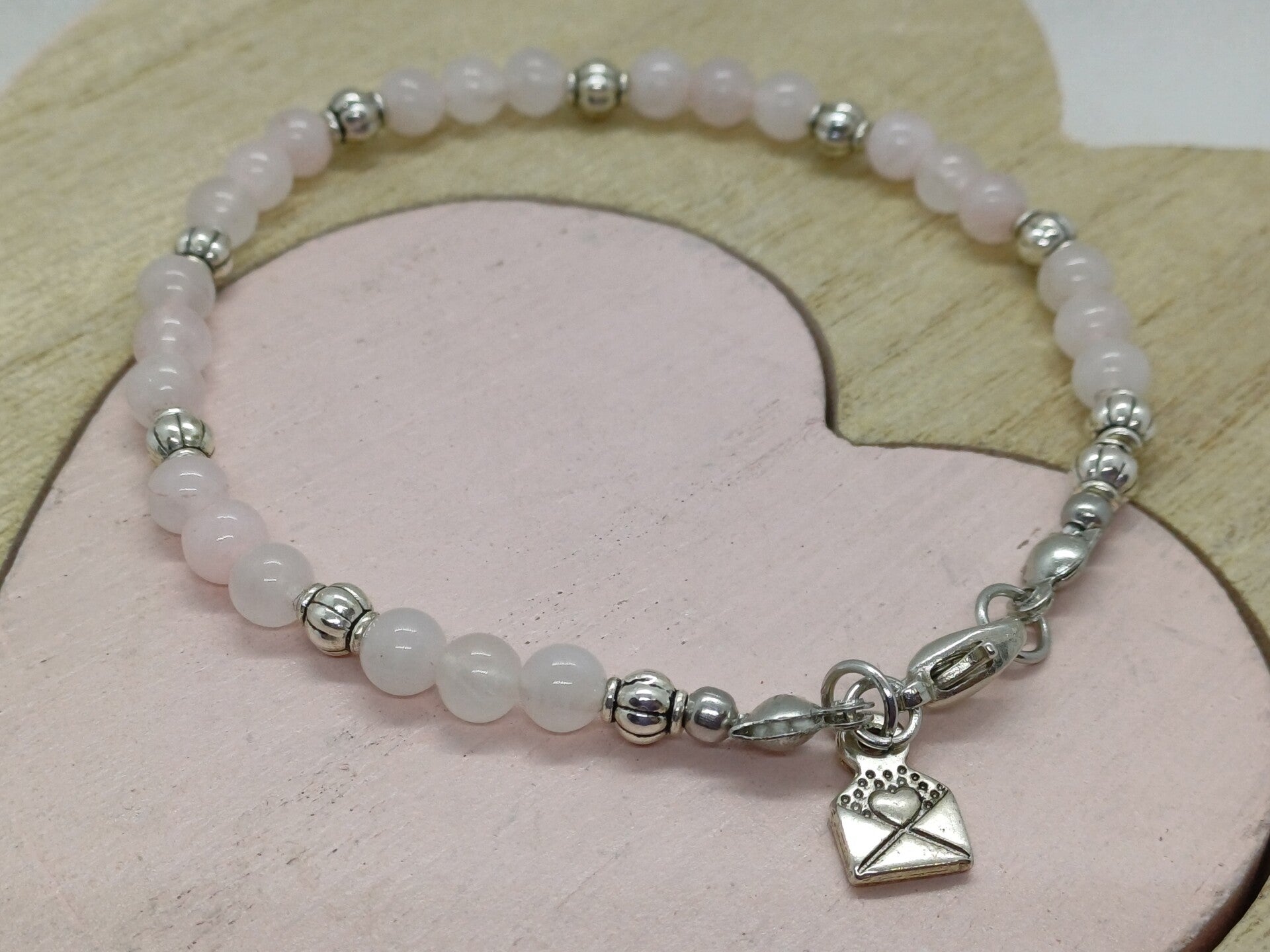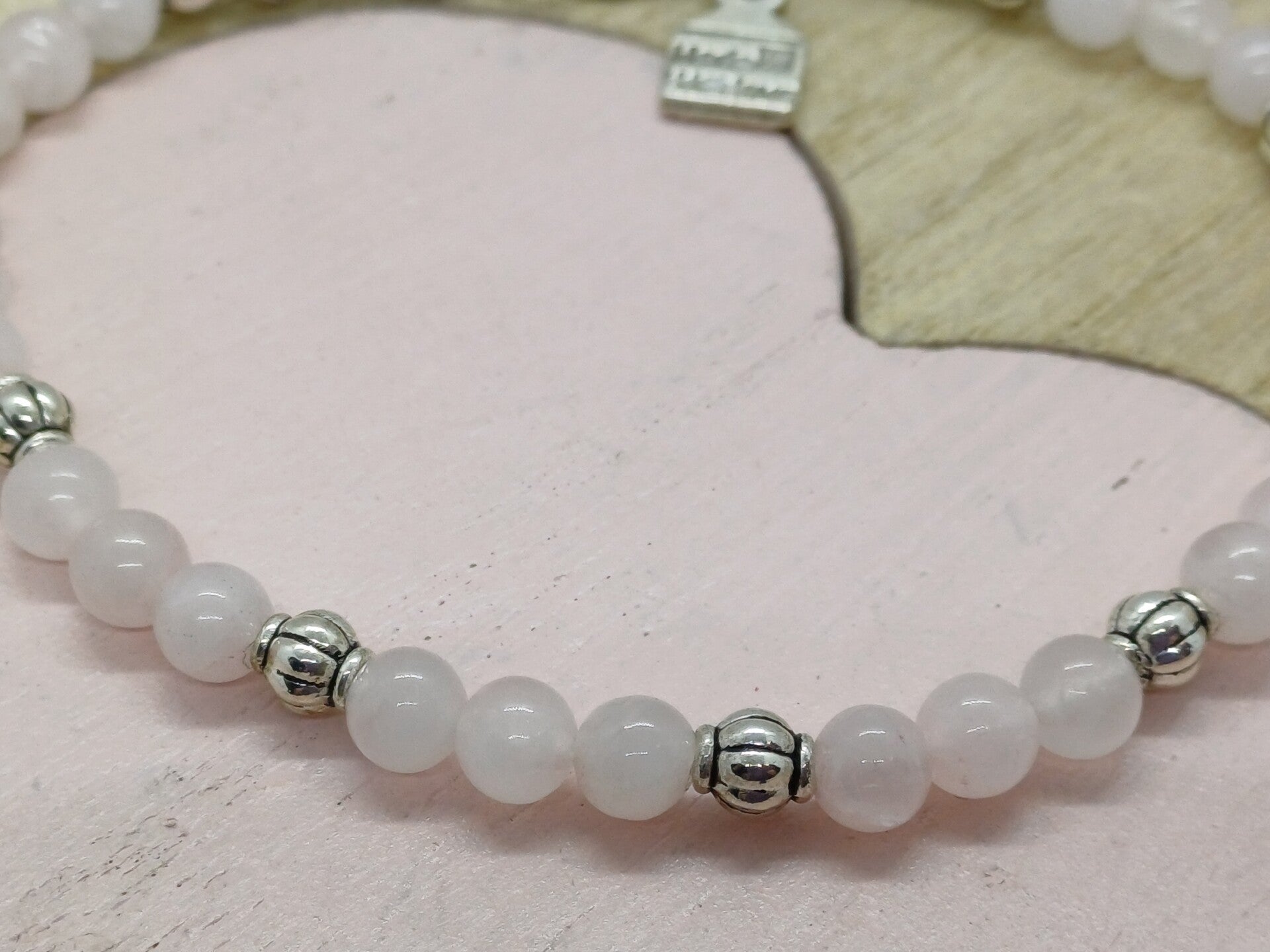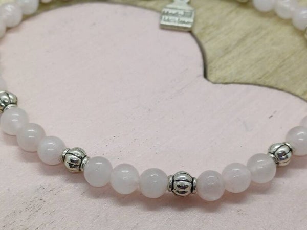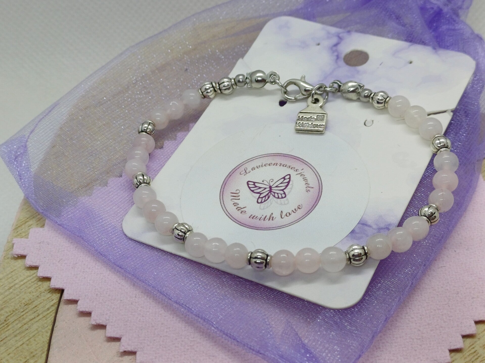 Moderne fijne armband met mini Rozenkwarts parels -4mm en 925 zilver parels -5mm- en afgewerkt met nikkelvrij materiaal en verkrijgbaar in vele lengtes en ook met andere halfedelsteen.