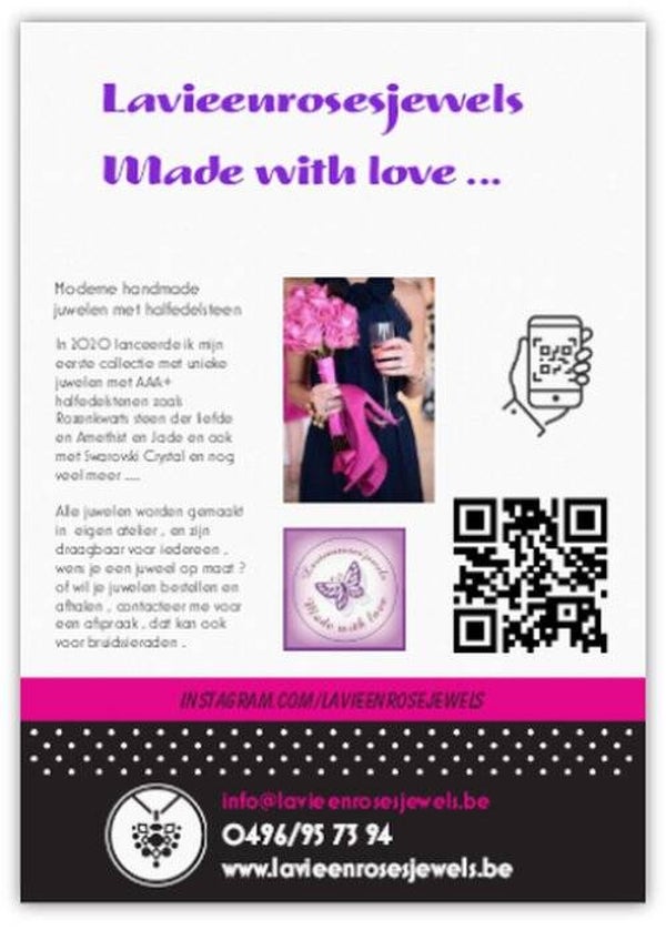 Alle juwelen worden standaard leuk verpakt met een poetsdoekje en een folder met uitleg over de werking en onderhoud van halfedelsteen.