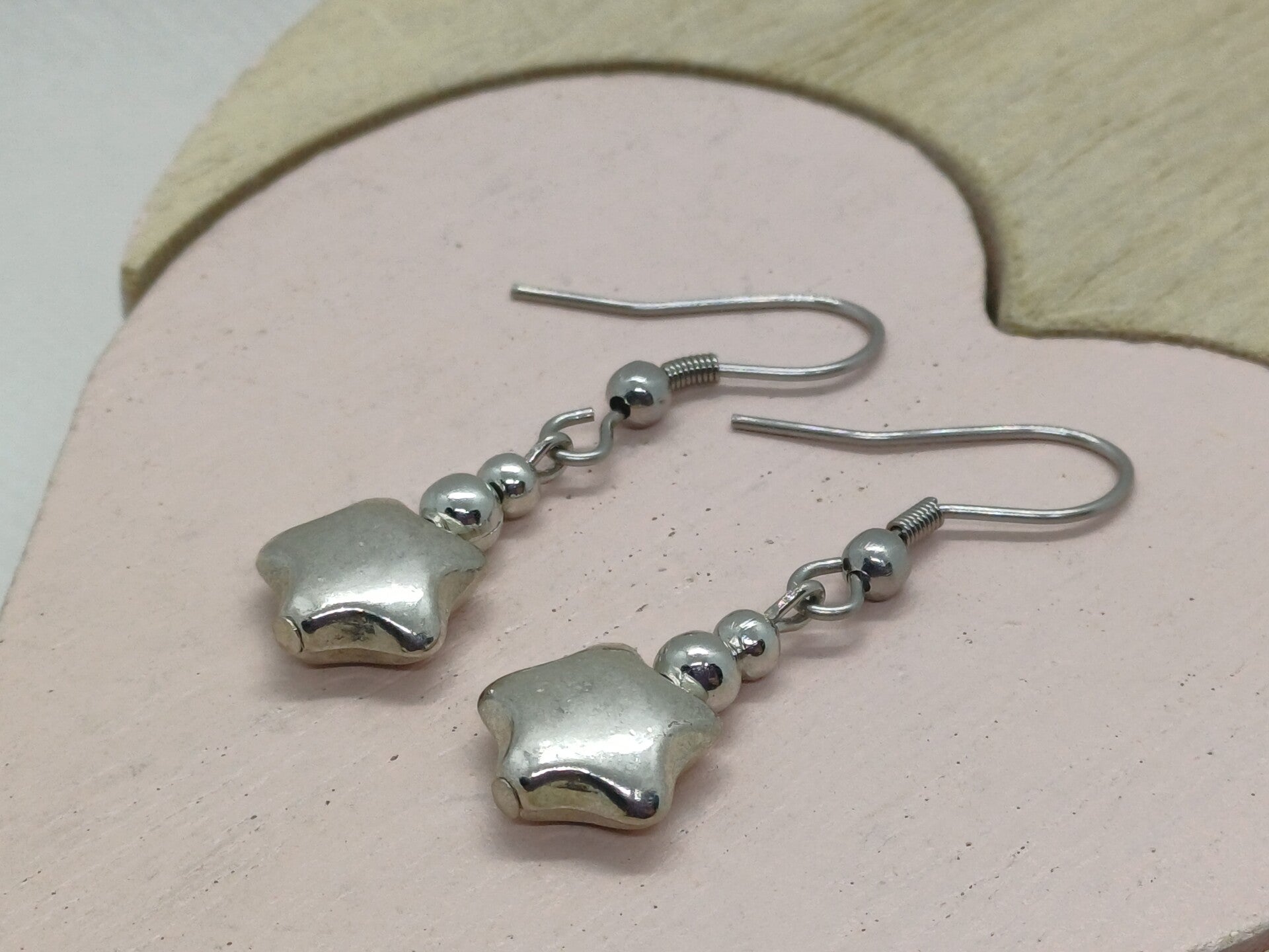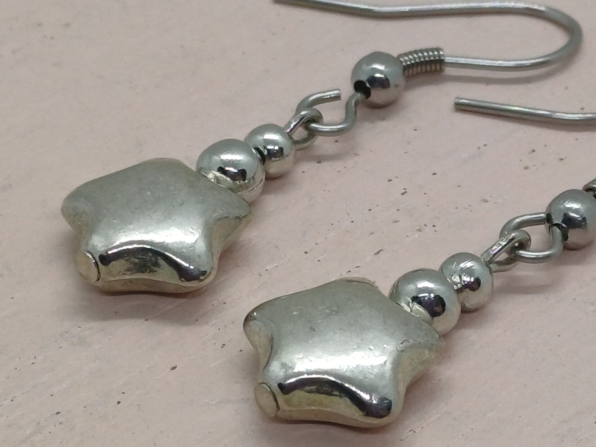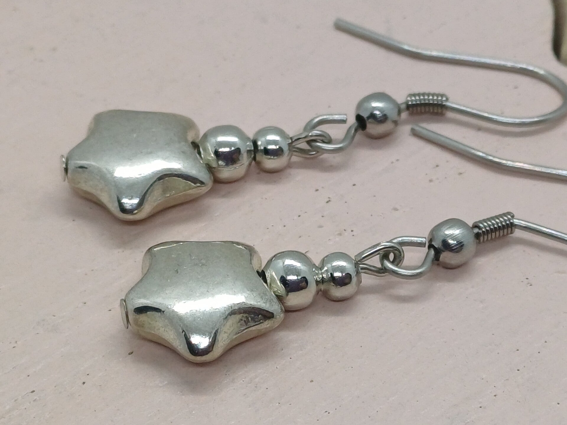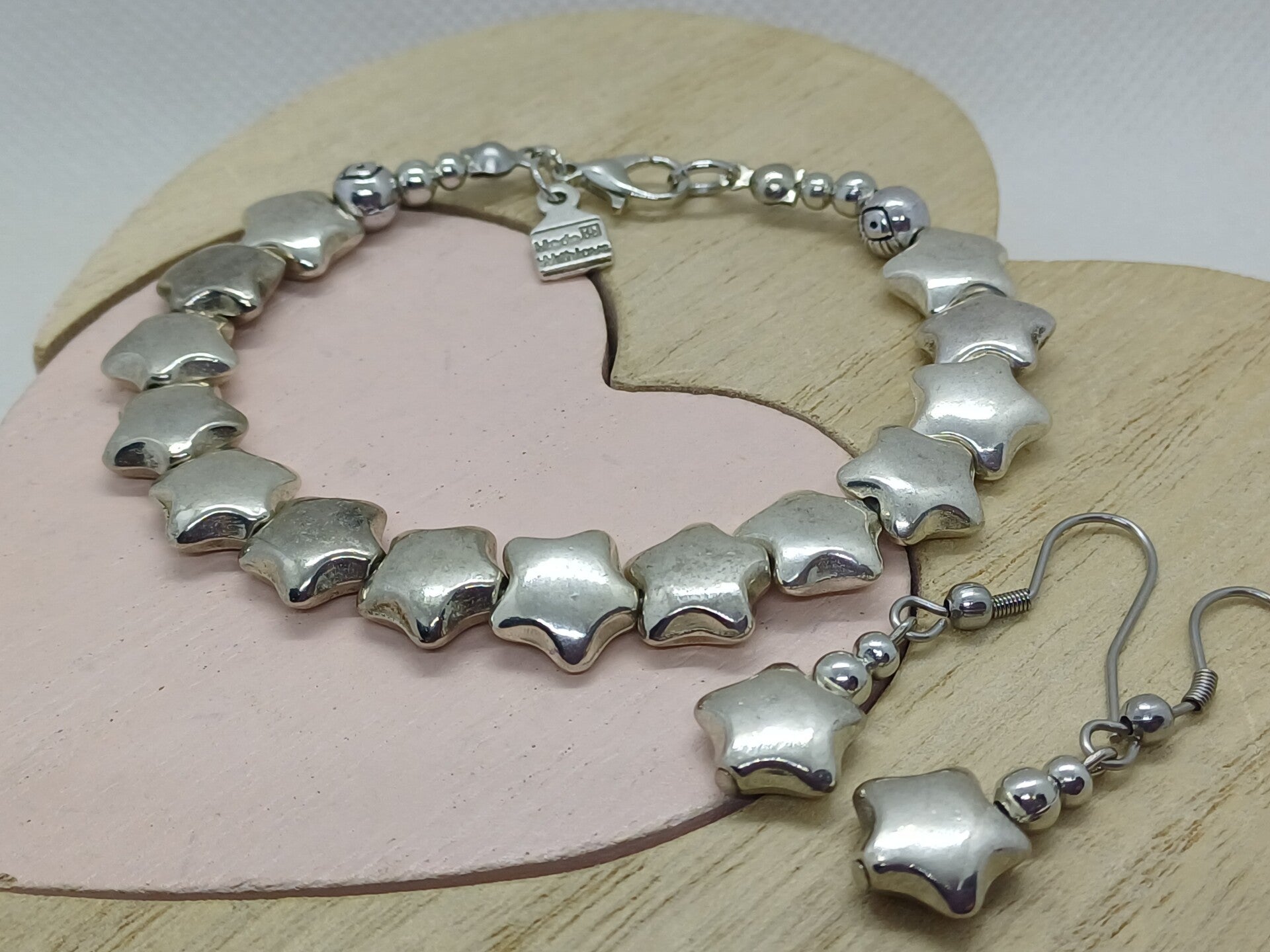 Moderne handgemaakte armband met nikkelvrije Tibetaans 925 zilver sterren -1 x 1 cm en afgewerkt met nikkelvrij materiaal.