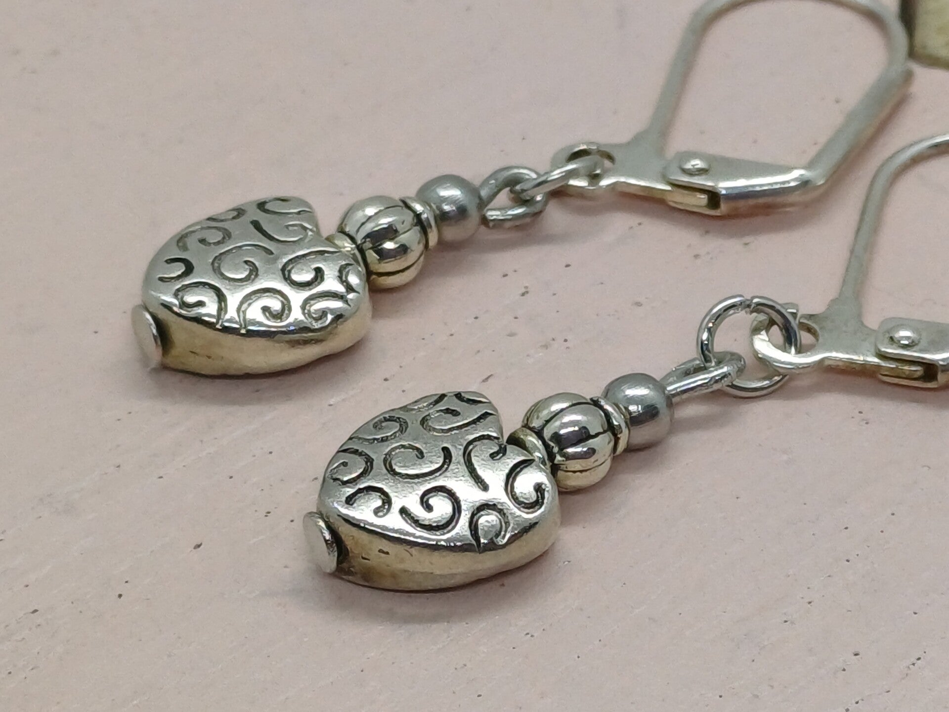 Moderne handgemaakte oorbellen met nikkelvrije Tibetaans 925 zilver harten -1 x 1 cm en afgewerkt met nikkelvrij materiaal.